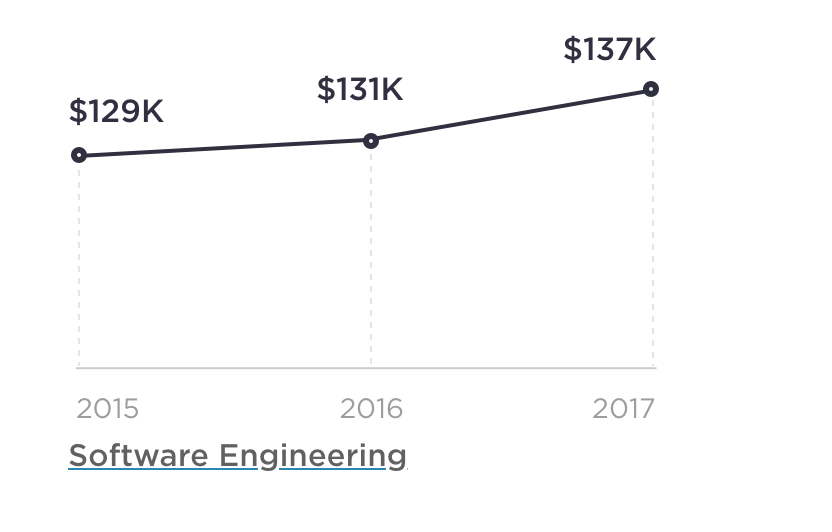 根據舊金山公司Hired(該公司幫助客戶招募技術人員)提供的全球統計數據顯示,區塊鏈工程師的每年平均收入約150,000美元至175,000美元之間,這比一般軟體工程師每年平均收入135,000美元還要高上許多。Hired表示,擁有區塊鏈專業知識工程師的薪資與專注於人工智能的開發人員相當,並且高於其他任何專業工程師。